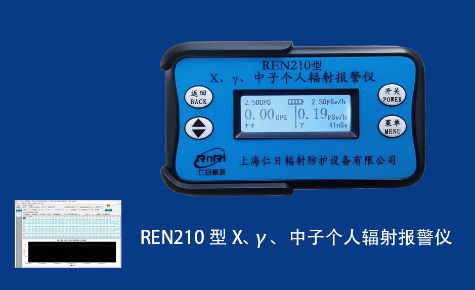 REN210型X、γ、中子個人輻射報警儀內(nèi)置SiPM和鋰玻璃晶體組成中子探測器儀器,采用反照率方式探測中子射線,同時也能探測X、γ射線。因此它可同事監(jiān)檢測X、γ、中子三種射線。能顯示工作場所的劑量當(dāng)量率和累積劑量,更換電池時,日期及累積數(shù)據(jù)能永久保存。可選配RenRiPersonal個人劑量管理軟件,該軟件可存儲多個人的歷史數(shù)據(jù),能記錄日累積、月累積、年累積、輻照時長、計算平均劑量率、扣除或不扣除本底輻射,且以文字和圖譜的方式展現(xiàn)數(shù)據(jù)。廣泛應(yīng)用于環(huán)保、化工、水泥、煤礦、土木工程、石油、醫(yī)院、疾控、進(jìn)出口商檢、核電、加速器、機場、中子源庫和其他安檢、邊境控制海關(guān)檢測等領(lǐng)域中的工作人員進(jìn)行個人安全防護(hù)監(jiān)測及放射性提示。